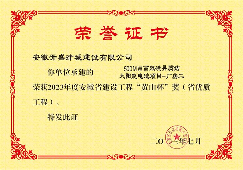 黃山杯--“500MW高效硅異質(zhì)結(jié)太陽(yáng)能電池項(xiàng)目-廠(chǎng)房二”